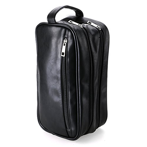 - Durable leather top stitched handle, giving you an easy way to carry it. Stylish, functional, convenient and practical, well-protecting travel shaving kit for men and women. Fits travel and full-size essentials perfectly. Great for business, vacation, gym or any special occasion.
