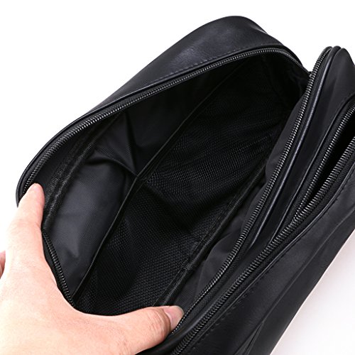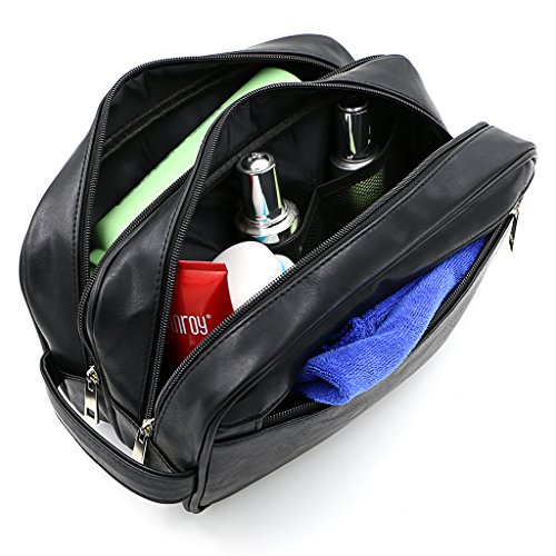 - This dopp case designed with two separate roomy zip storage compartments and one front exterior zippered pocket that easily fit a wide spectrum of travel and full-size toiletries, separating the shaving accessories from fluid items, easily put into a suitcase. more convenient for the journey.