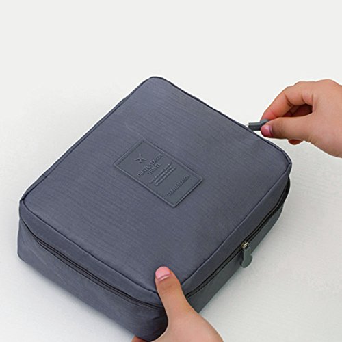 BAYCHEER Multifunction Portable Makeup Cosmetic Bag Pouch Travel Toiletry Bag Train case Organizer Polyester and silk cotton, 8.27x6.3x3.15 inches, Grey