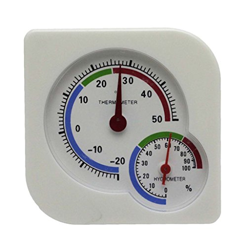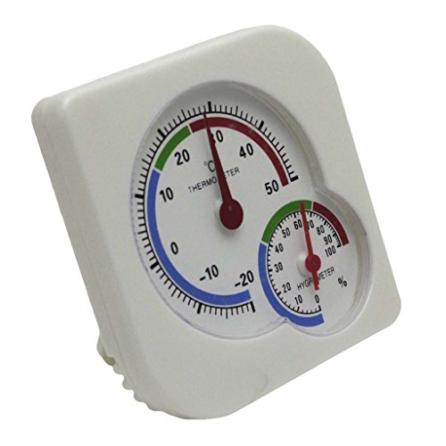 -. Feature : Material: Plastic / Dimension:approx 7.5cm * 7.5cm*1.2cm / Diaplay: Analog / Color: White / Package Content:1 * Mini Hygrometer