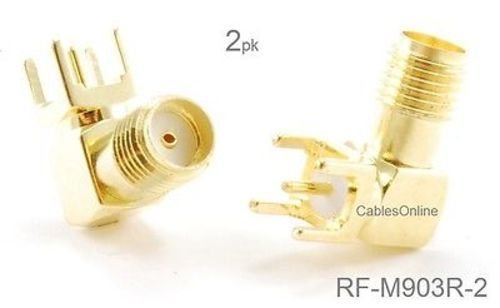 CablesOnline, 2-Pack SMA Female Jack PCB Mount, Gold Plated Right-Angle RF Connectors, RF-M903R-2