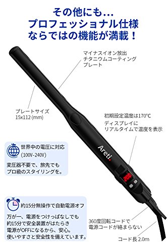 원본상품명: Areti アレティ マイナスイオン ストレト カル 用 極細 ヘアアイロン i628BK () メンズ 兼用 海外 プロ仕