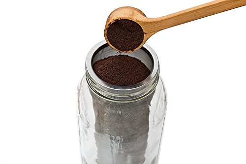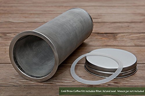 Double Wall Filter with Plastic Seal Cold Brew Coffee, Iced Tea, Iced Coffee Maker, Fruit Infuser, and Heavy Duty Stainless Steel Lid for Wide Mouth Mason Jar 2 Quart (64oz)