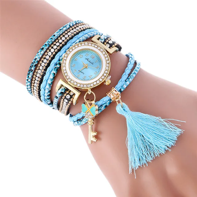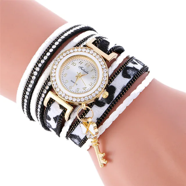 | [해외] 단순 여성 석영 팔찌 시계 주위에 랩 패션 직조 가죽 크리스탈 다이아몬드 드레스 손목 시계 Relogio Feminino |