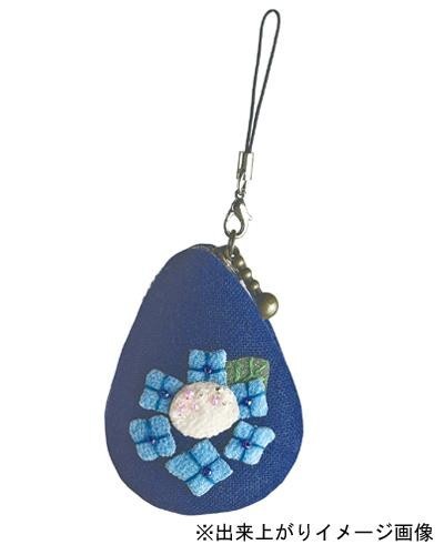 | 6月のお花、アジサイがデザインされたしずく型の小物入れ。アクセサリーや薬など、小さな物を入れるのに重宝します。ストラップは取り外しが可能で、バッグの持ち手に付けられます。 |