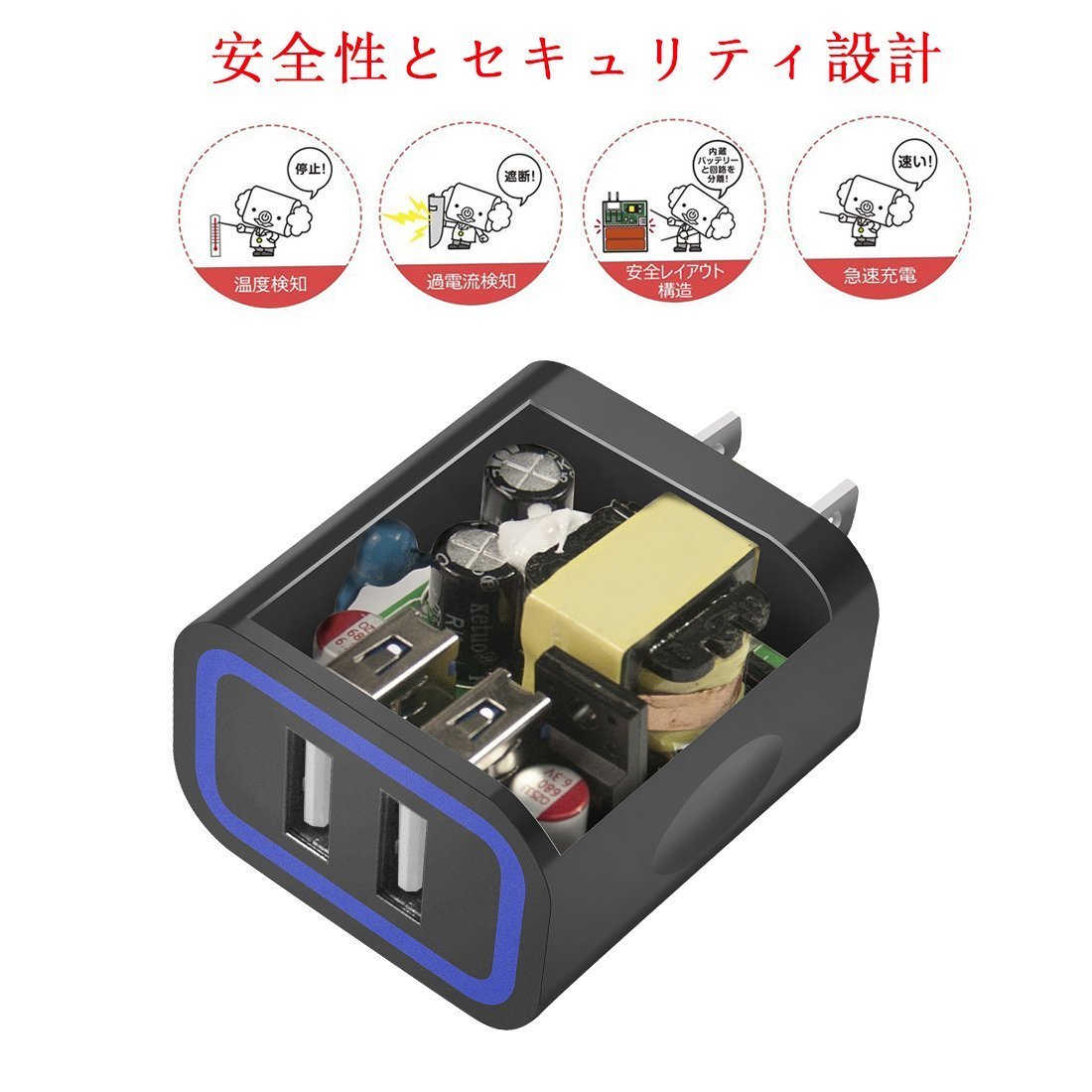 USB quick charger 2 port 17 W USB charger AC adapter USB adapter Smartphone Small flash charging Ultra compact lightweight mobile convenient iSmart function equipped iPhone 7/7 Plus / iPhone 6/6 Plus / iPhone 6/6 plus / iPhone 5 C / 5 S / 5 / iPod /