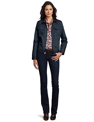 Dickies misses classic fit heritage styled jacket designed to coordinate with our traditional work pants, front chest pockets with button closure, outside sleeve pocket, side slash front pockets, and multi-use interior pocket are all functional, heavy duty Dickies signature zipper detail, adjustable button tabs at sleeve and back waistband for style and fitFeature
