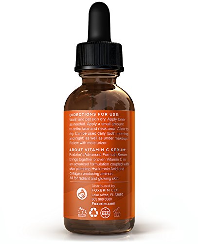 -. Binding : Misc. -. Brand : Foxbrim -. EAN : 0617724293207 -. Feature : HIGHEST QUALITY VITAMIN C SERUM COUPLED WITH PROVEN HYALURONIC ACID - The powerful antioxidant Vitamin C is coupled with skin plumping Hyaluronic Acid for a complete and proven solution. Repair the damage and restore the beauty with this delicate and light serum. / ONLY PROVEN INGREDIENTS AND NOTHING MORE - Crafted with all skin types in mind. No mystery ingredients or unnecessary fillers. Only the ingredients you need to address all the visible signs of aging. From unsightly wrinkles and fine lines to dark sunspots and discoloration. One bottle for many solutions. One serum for exceptional beauty. / ABOVE THE REST AS A PROVEN SOLUTION - Don't compromise. We proudly provide you the superior option with a refined ingredient list elevating highly concentrated Vitamin C and pure vegan Hyaluronic Acid. Simply without equal. Create beautifully supple and resilient skin ready to fight the signs of aging and environmental damage. / 1,000s OF REVIEWS AND EXCEPTIONAL RESULTS - We absolutely love hearing all the wonderful results from our customers. With more and more each day we want you to be next. / AMAZING AMAZON SALE PRICE - Enjoy a limited offer sale price right here on Amazon. Conveniently shipped directly to you. Order now to secure your bottle today - Click the Add to Cart button now. -. Model : Advanced Formula Vitamin C Serum -. MPN : AFVCS-21 -. NumberOfItems : 1 -. PackageQuantity : 1 -. PartNumber : AFVCS-21 -. ProductGroup : Beauty -. ProductTypeName : BEAUTY -. Size : 30mL -. Title : Foxbrim Vitamin C Serum for Face, 1 fl oz. - BEST Anti-Aging Serum - Vegan Hyaluronic Acid & Amino Complex - Premium Face Serum for Beautiful Skin - Natural & Organic - Perfect for All Skin Types - Lasting Results with Amazing Guarantee -. UPC : 617724293207