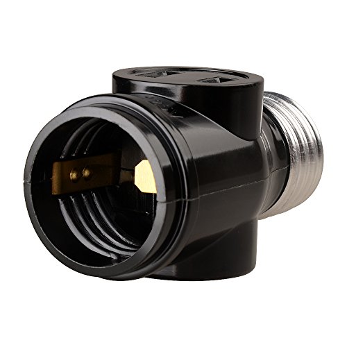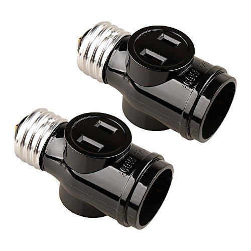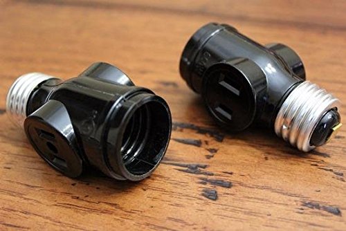 Onite 2 PCS of E26 to E26 US Standard Screw Light Holder with Two Outlet Socket Adapter, Black