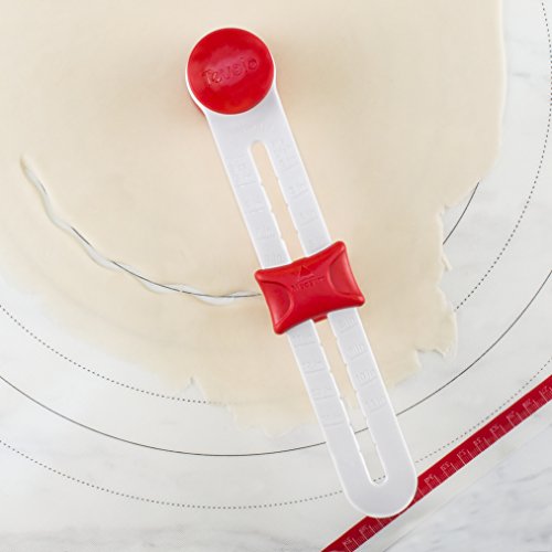 This Tovolo Precision Pie Crust Cutter is for 2"-14" baking dishes and has an easy-to-use measurement guide on the cutter