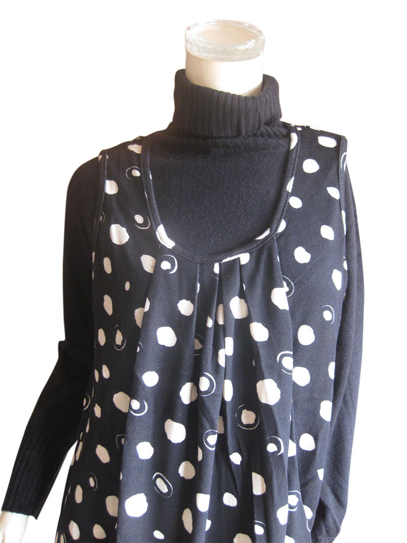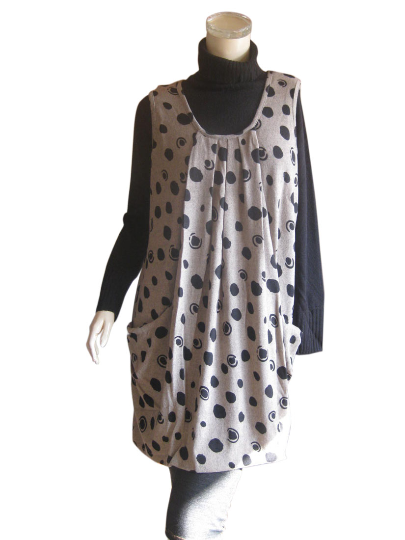 ふんわり可愛い♪変形ドット柄ノースリーブチュニック