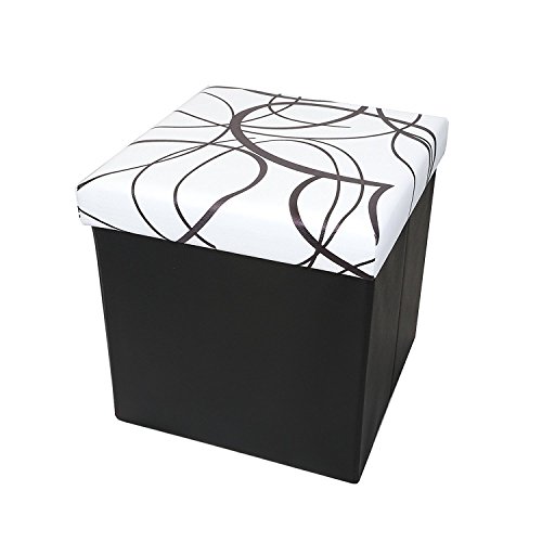 Otto & Ben 15 inch Swirl Design Memory foam Seat Folding Storage Ottoman Bench with Faux Leather, White