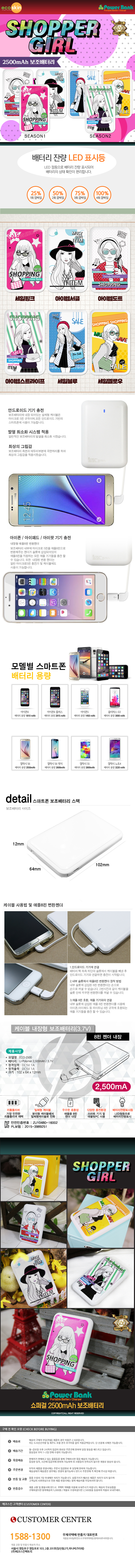- 품명 및 모델명[ECO]에코스킨 쇼퍼걸 2500mAh 보조배터리