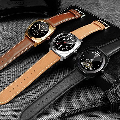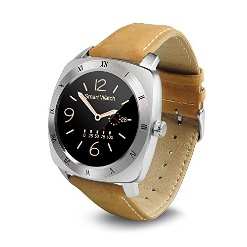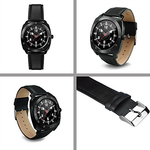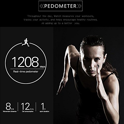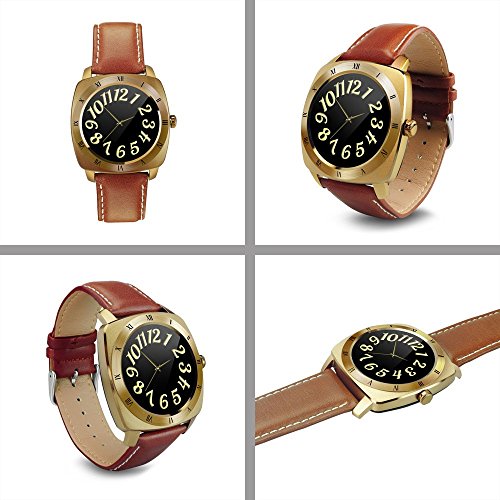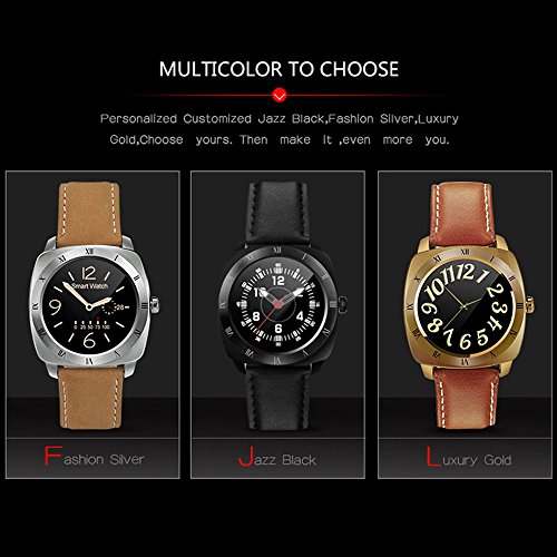 -. Feature : Multi-Function with APP on Android & IOS Phones - Accurate Heart Rate Monitoring / Receive Phone Call / Music Play Control / Alarm Clock / Call Records / Pedometer / Changeable Home UI / Time Display / Looking for My Device / Phone Book / MP4 Play, Bluetooth Music Play / Sedentary Remind / Sleep Monitoring / Calendar / Twitter, SMS, News Notification / Remote Camera / Calculator / Recorder / Quality Craftsmanship: 1.22 inch TFT Round Circle Screen; Full HD IPS Review; Capacitive touch Screen; 240*240 pixels; Alloy Metal Case; Italy Leather Strap, standard device with cowhide leather, 24mm watchband interface and easy to replace / IP53 Level Life Waterproof, Dustproof, Rainproof & Sweat-proof: The water resistance is good for accidental splashes from washing your hands or maybe doing the dishes, but definitely do not bathe or fully submerge your watch / Adsorption Charging: Humanization design with adsorption charging that more fashion, safe and fast convenience / Personalization - It can reflect a wide range of tastes and style, watch with multi UI surface, free to change as your style. Comes with variety of dials, fashion style, business style, simplicity style, free to change as your like. And you can make it even more personal by switching bands and changing watch faces, anytime you want