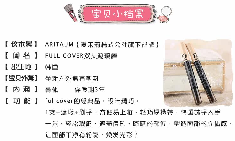 fullcover的经典品,设计精巧,1支=遮瑕+刷子,方便易上妆,