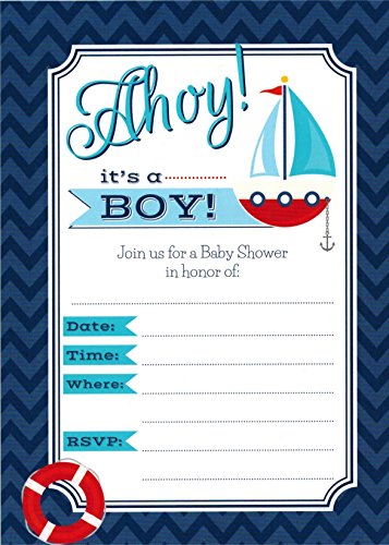 Ahoy it's a Boy - 24 Nautical Themed Baby Shower Invitations and 24 Envelopes
