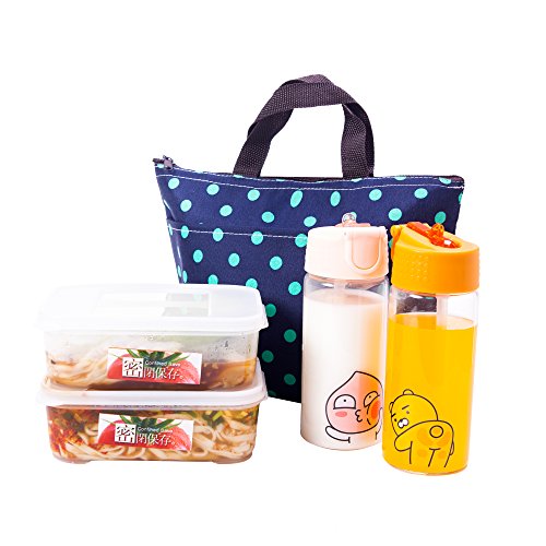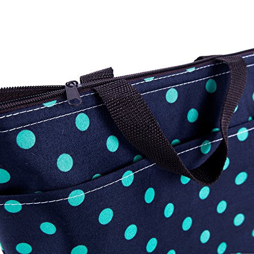 Printing Lunch Bags, Arricastle Oxford Cloth Aluminum Foil Insulated Zip Cooler Bag Portable Takeaway Aluminum Film Pack Cooler Bag Lunch Box Package (Dark Blue Waves)