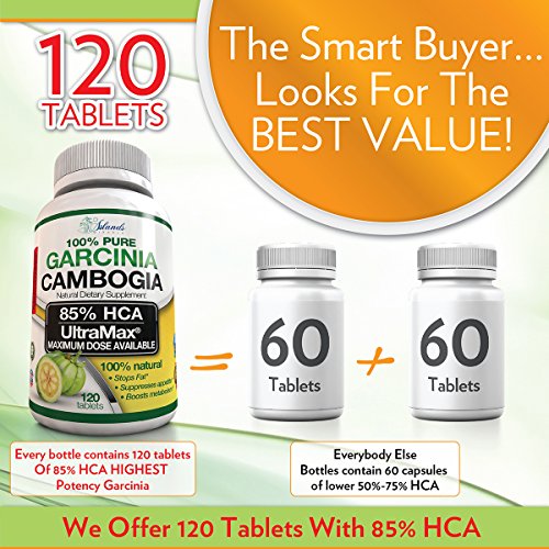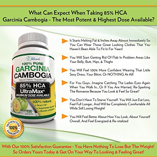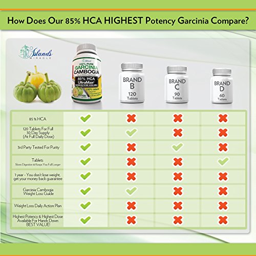 -. Binding : Health and Beauty -. Brand : Island's Miracle -. EAN : 0820103908450 -. Feature : YOU DON'T HAVE TO STARVE YOURSELF TO LOSE WEIGHT - Imagine Eating Only A Few Bites And Feeling Completely Full - Or By Dinner Time Not Feeling Hungry At All...? Eliminates Those Powerful Cravings That You Just Couldn't Resist In The Past! This Brand New 85% HCA MAX POTENCY Formula Is Specifically Designed To Curb Hunger Pains Without Restricting Calories Or Dramatically Changing Your Daily Habits!! / START MELTING THE INCHES AWAY AMOST INSTANTLY To LOOK FANTASTIC - How Exciting & Motivating Would It Be To Start Getting Rid Of Stubborn Fat Without Having To Radically Change Your Diet? Wouldn't It Be Exciting To Finally Fit Into Those Clothes You Couldn't Fit Into Before? Wouldn't It Be Nice To Turn Heads Again Like You Used To...Well, Prepare Yourself For Compliments From The Opposite Sex! / NO SIDE EFFECTS - Most Users Report Zero Side Effects. No Jitters. No Nausea. No Headaches. In Fact, People Are Actually Reporting An Increase In Energy Throughout The Day And Many Are Seeing An Improvement In Their Mood (Possibly Due To The Stabilization Of Blood Sugar Levels)! / 85% HCA (NEW MAX POTENCY AVAILABLE) IS THE HIGHEST POTENCY ON AMAZON, HIGHEST Daily DOSE FORMULA - 120 Tablets AND A Full 30 Day Supply At MAXIMUM DOSE Make This The Best Value Garcinia Cambogia EVER Offered! This Brand New Formula Was Developed To MAXIMIZE The Effects Of The Proven Garcinia Cambogia Weight Loss Supplement! EVERY Other Garcinia Out There Has 50, 60, 75, Or 80% HCA Which Is Lower Than our 85% MAX POTENCY And You Have To Watch Their Dose - Most Will Last You Only 2 Weeks At Max Dose Where We Offer A Max Dose For A Full 30 Days! / 100% MONEY BACK GUARANTEE + E-BOOK - HOW TO LOSE WEIGHT WITH GARCINIA CAMBOGIA. When You Order Your 85% HCA Garcinia Cambogia Extract Today, You're Protected By Our 90 Day No-Questions Asked Money Back Guarantee! Not Only Do You Get A Full 30 Day Supply Of This Unmatched Exclusive Formula 85% HCA 3,000mg Per Day Garcinia Cambogia, You Also Get The E-Book "How To Lose Weight With Garcinia Cambogia" Step-By-Step Daily Action Guide, World Class Customer Service, And Our Exclusive - Lose Weight Or 100% Money Back Guarantee! -. Label : Island's Miracle -. LegalDisclaimer : These Statements have not been evaluated by the Food and Drug Administration. This Product is not intended to diagnose, treat, cure or prevent any disease. -. Manufacturer : Island's Miracle -. PackageQuantity : 1 -. ProductGroup : Health and Beauty -. ProductTypeName : HEALTH_PERSONAL_CARE -. Publisher : Island's Miracle -. Studio : Island's Miracle -. Title : 85% HCA (High Potency) Pure Garcinia Cambogia Extract 3,000mg/Day (No Added Calcium) Max Dose & High Potency - 120 Count Fast Dissolving Tablets Premium All Natural Appetite Suppressant Plus Weight Loss E-Book! -. UPC : 820103908450