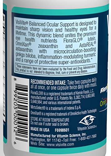 VisiVite Balanced Ocular Support - Premium, Natural Eye Vitamin - 60 Vegetarian Capsules - 1 Month Supply
