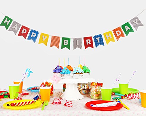 -. Title : Happy Birthday Banner Bunting Laser Cut Felt 60 inches wide - Party Colors by Decomod