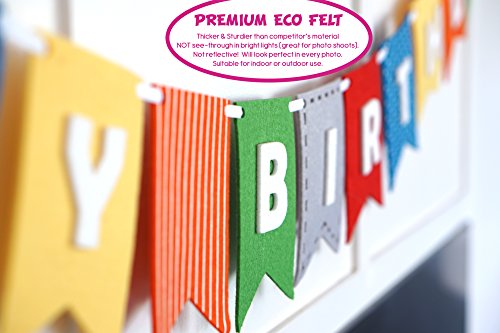 -. Feature : Made from durable, sturdy, layered felt - will not bend, tear, or rip in storage! / 60 inches total width - Handmade look that will have your guests asking if you made it yourself! / Party Colors; Green, Gray, Red, Blue, Yellow, Orange / Some assembly required - comes unstrung so you can customize your look. No supplies or tools needed for assembly / Made from premium eco felt that is 3mm thick. Check out our other banners for every occasion!