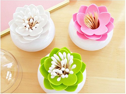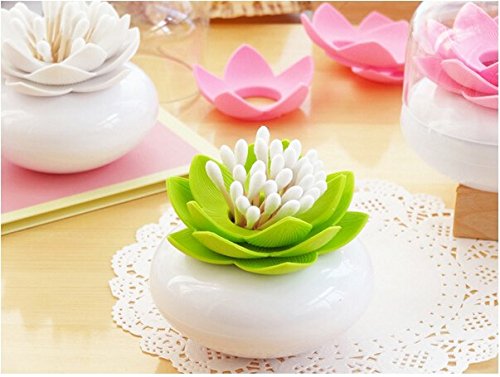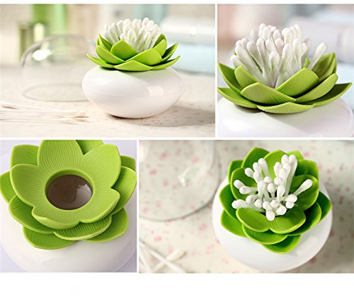 Peicees Lotus Cotton Swab Holder Q-tips Toothpicks Storage Organizer Green