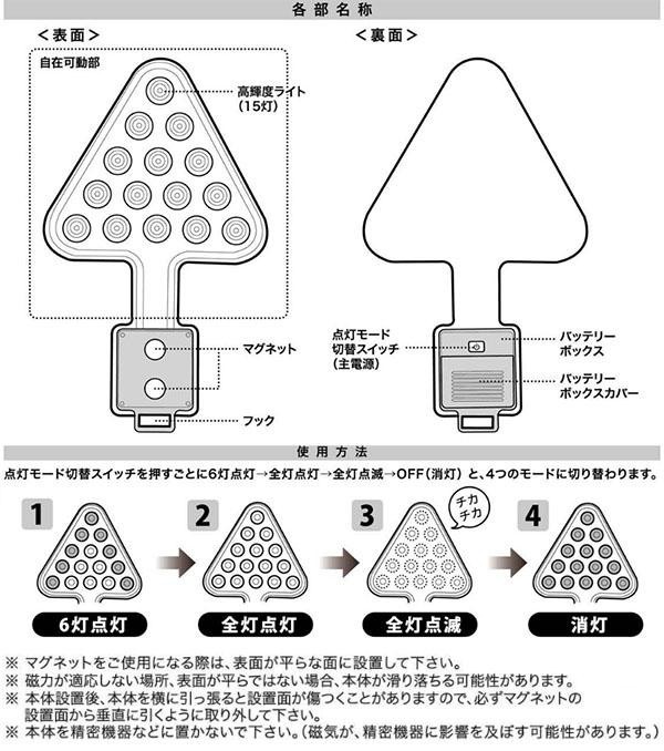 | 仕様 | ■電源:単3アルカリ乾電池×3本 ■ルーメン値(約):最大光束60lm ■連続使用時間(約):16時間(アルカリ乾電池の場合) ■保証期間:6ヶ月 |