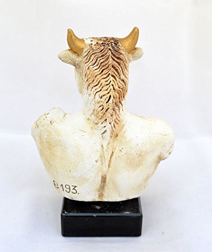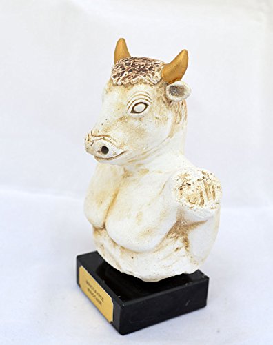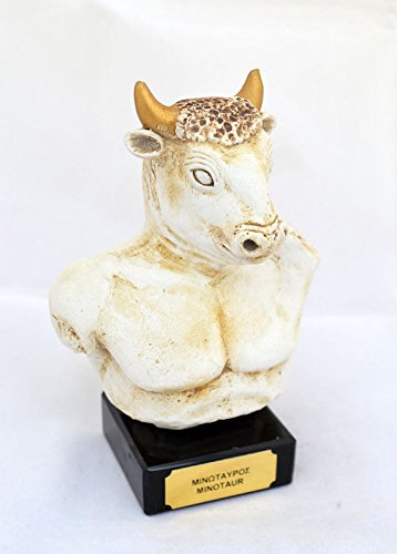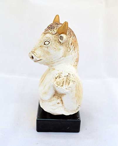 Studio : Estia Creations Publisher : Estia Creations Binding : Kitchen Product Description In Greek mythology, the Minotaur (/?ma?n?t?ː/, /?m?n??t?r/; Ancient Greek: Μ?ν?ταυρο? [miːn??ːtau?ros], Latin: Minotaurus, Etruscan Θevrumine?), was a creature with the head of a bull on the body of a man or, as described by Roman poet Ovid, "part man and part bull". He dwelt at the center of the Cretan Labyrinth, which was an elaborate maze-like construction designed by the architect Daedalus and his son Icarus, on the command of King Minos of Crete. The Minotaur was eventually killed by the Athenian hero Theseus. The term Minotaur derives from the Ancient Greek Μ?ν?ταυρο?, a compound of the name Μ?νω? (Minos) and the noun τα?ρο? "bull", translated as "(the) Bull of Minos". In Crete, the Minotaur was known by its proper name, Asterion, a name shared with Minos' foster-father. Tracking number provided!!! Details: Condition: New, made in Greece. Approximately Height: 14.5cm - 5.7 inches Width: 9.5cm - 3.7 inches Weight: 0.5Kg Material: Casting stone 0