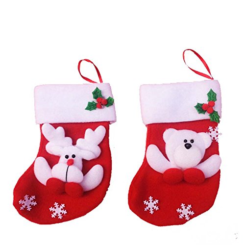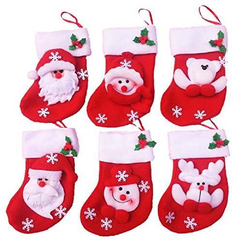 WONGYEE Christmas Stockings Santa, Snowman, Reindeer, Beer, Xmas 3D Hanging Tag Knit Set of 6