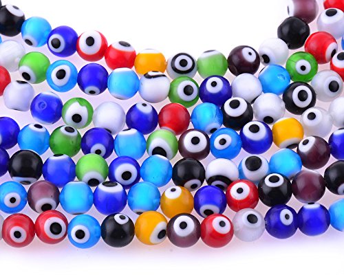 8mm 200 Pcs Evil Eye Glass Beads Assorted Colors of Jewelry Findings for Bracelet ,Necklace or Others