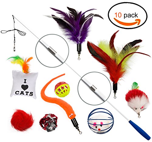 (EcoCity)/Pet Supplies/Toys/DIRECT FROM USA/Cat Toys - Cat Feather Toys - 10 pieces, Retractable Cat wand and Natural Feather Refills and o...