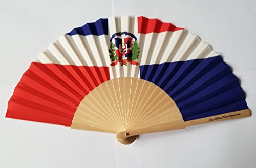 Dominican Republic Flag Fabric Folding Hand Fan with Bamboo Handle