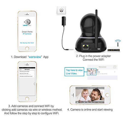 WANSVIEW WIRELESS SECURITY CAMERA: Helps you keep eyes on your home/baby/nanny/pet/elder/workplace at anytime and anywhere.1280*720P resolution at 25fps, the living stream can be accessed via iOS/Android mobile devices APP, Windows PC and Apple Mac Software(7/24 recording function on PC) and http web browsers (IE, Firefox, Safari, Chrome supported).