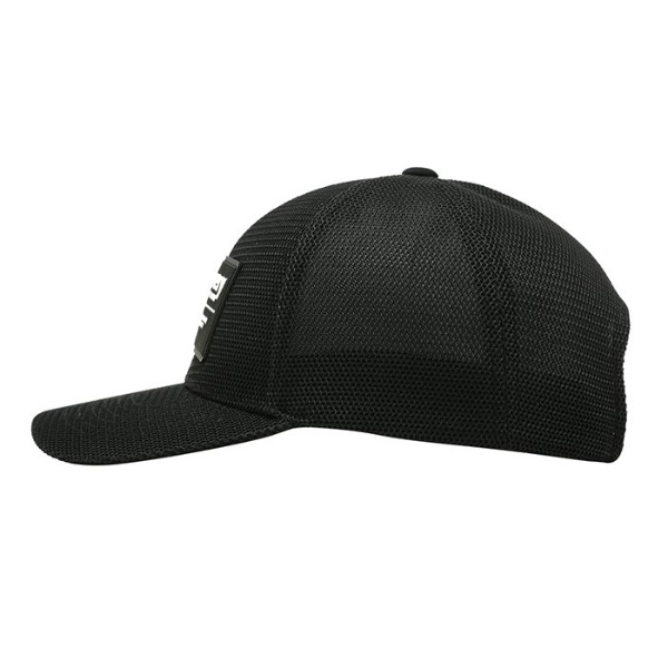 * 크라운 전면에 사각 고무 와펜 로고를 적용하여 깔끔한 포인트를 줌.
