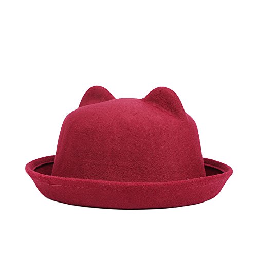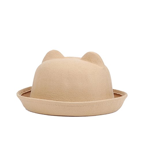 (FloYoung®)/Accessories/Hats/DIRECT FROM USA/FloYoung Women's Candy Color Wool Rool Up Bowler Derby Cap Cat Ear Hat