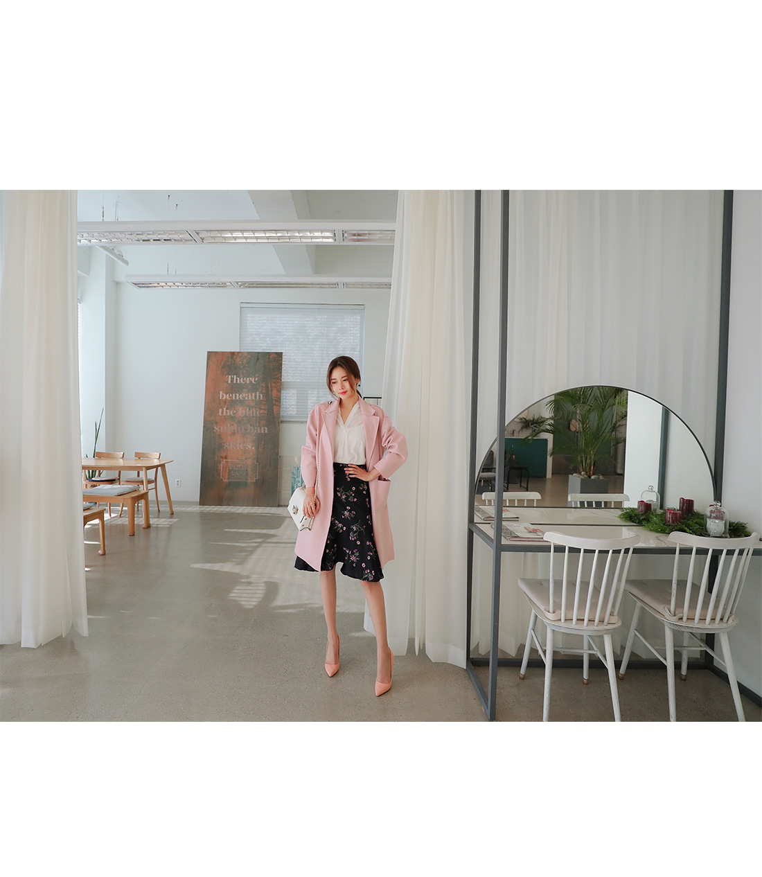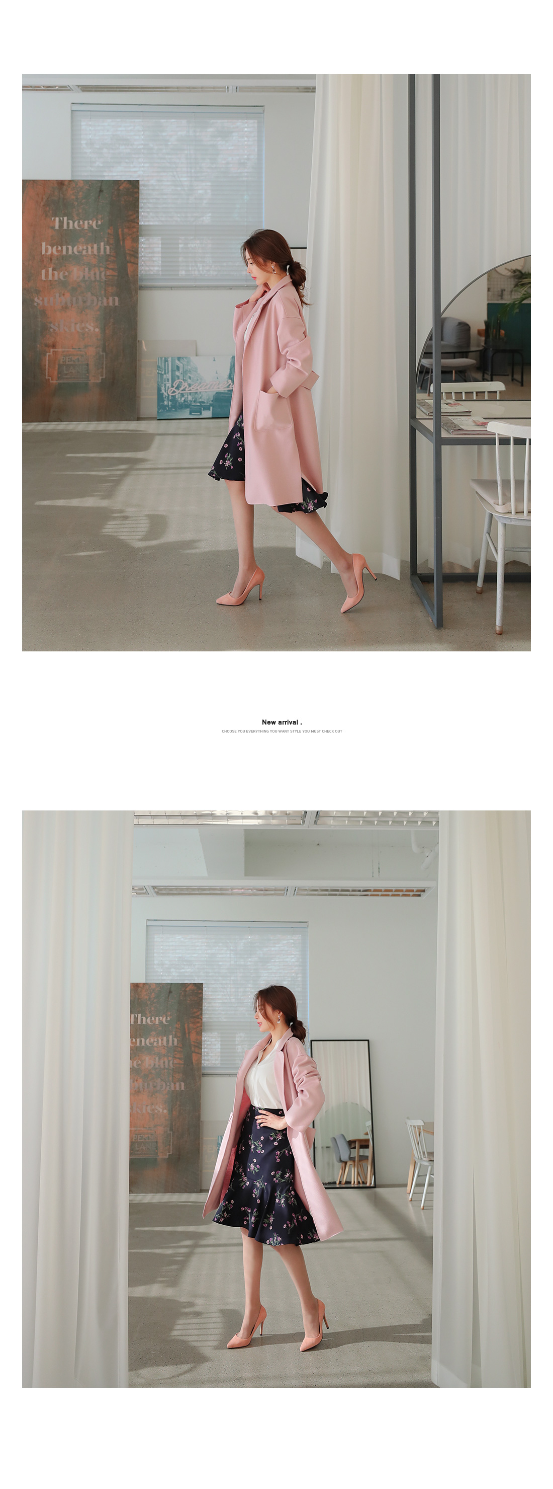 무릎 아래로 떨어지는 롱 한 기장감으로 세련된 느낌이구요,