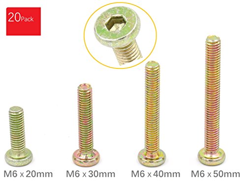 iExcell Total 20-Pack Yellow Zinc Plated M6 x 20mm M6 x 30mm M6 x 40mm M6 x 50mm Threaded Pitch 1mm Hex Socket Cap Screws Bolt Furniture Bolts