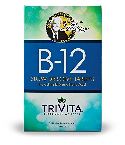-. Binding : Health and Beauty -. Brand : Trivita -. EAN : 0638936909403 -. Feature : WHY B-12: If you're older than 50, there's a good chance you could be deficient in Vitamin B-12. This nutrient is so vital because it's needed for metabolism - all the physical and chemical processes in the body that convert or use energy. You may also be at risk for deficiency if you: follow a vegetarian or vegan diet; have had gastrointestinal surgery; or have digestive disorders such as Crohn's or celiac disease. / WHY DR. LIBBY'S SLOW DISSOLVE B-12: 1,000 mcg of Vitamin B12, Vitamin B6, Folic Acid, Biotin / HOW TO USE: Allow them to dissolve under the tongue completely. You'll still get the great taste, plus the full benefit of these nutrients... Dr. Libby patented slow dissolve process helps to make sure you get the B-12 you need when you need it! -. Label : TriVita, Inc. -. LegalDisclaimer : These statements have not been evaluated by the Food and Drug Administration. This product is not intended to diagnose, treat, cure or prevent any disease. -. Manufacturer : TriVita, Inc. -. ProductGroup : Health and Beauty -. ProductTypeName : HEALTH_PERSONAL_CARE -. Publisher : TriVita, Inc. -. Studio : TriVita, Inc. -. Title : Dr. Libby's Slow Dissolve B-12: 1,000 mcg of Vitamin B12 -. UPC : 638936909403