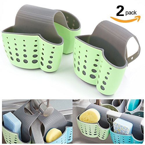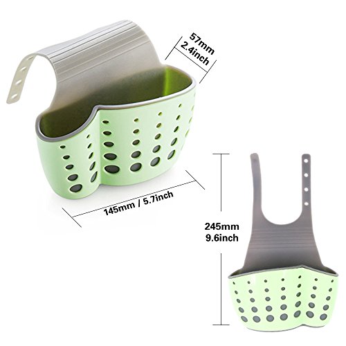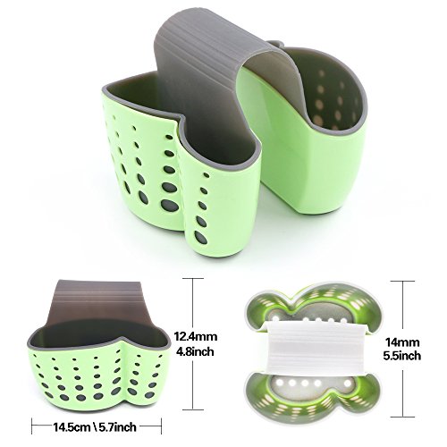 Swpeet 2 Pieces Plastic Hanging Sponge Holder Kitchen Sink Caddy Soap Holder, Sink Sider Faucet Caddy and Saddle Sink Caddy for Kitchen Organization Plastic Storage Baskets (Green)