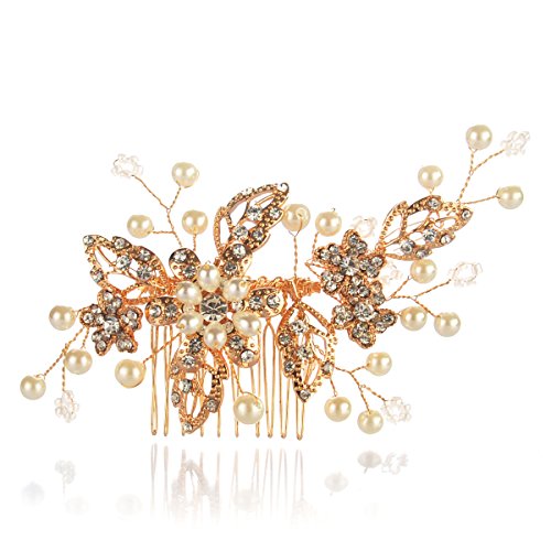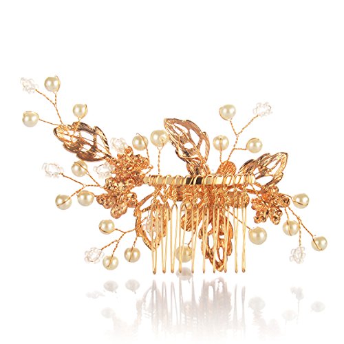 DESCRIPTION This stunning rose gold hair comb is full of captivation sparkle with a beautiful flower design. Featuring a beautiful bouquet of ivory faux pearl flowers enhanced and delicate crystal encrusted leaves, it fully handmade.