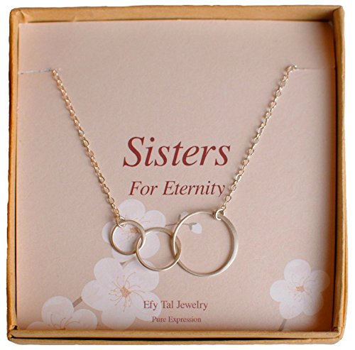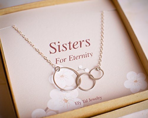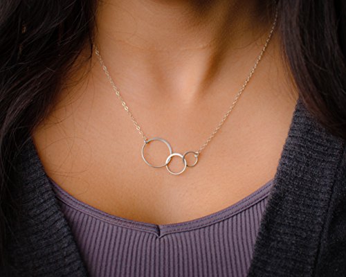 -. Title : Three Sisters Necklace, Sterling Silver Triple Interlocking Circles Infinity on Card