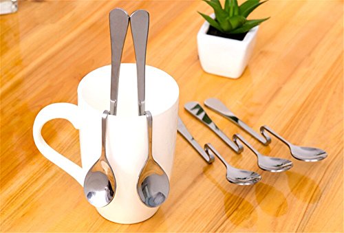 5 Pcs Coffee Spoons, Stainless Steel Bending Hanging Creative Coffee Spoons Dessert Spoons Tea Coffee Scoops