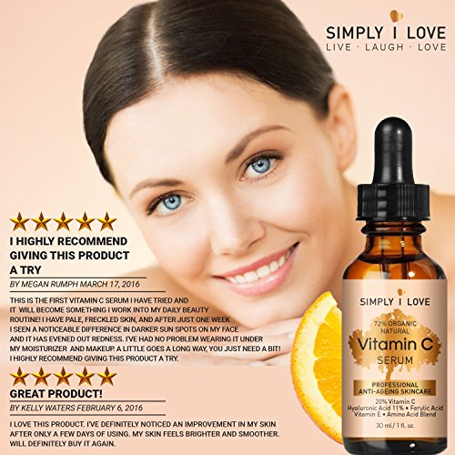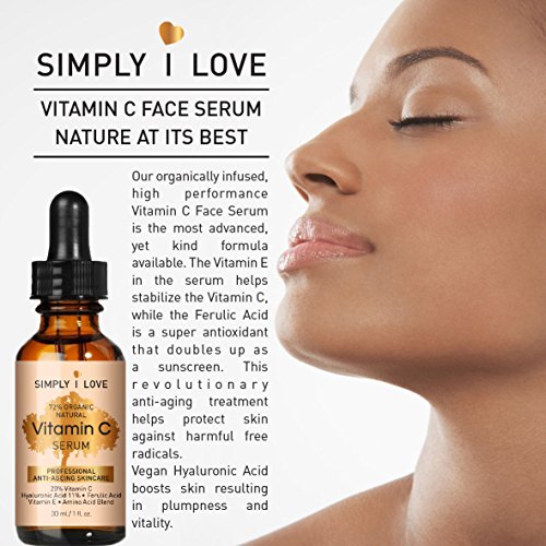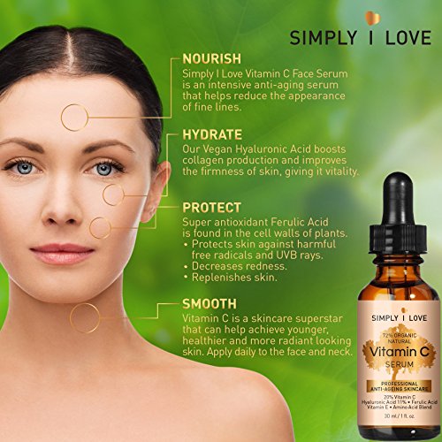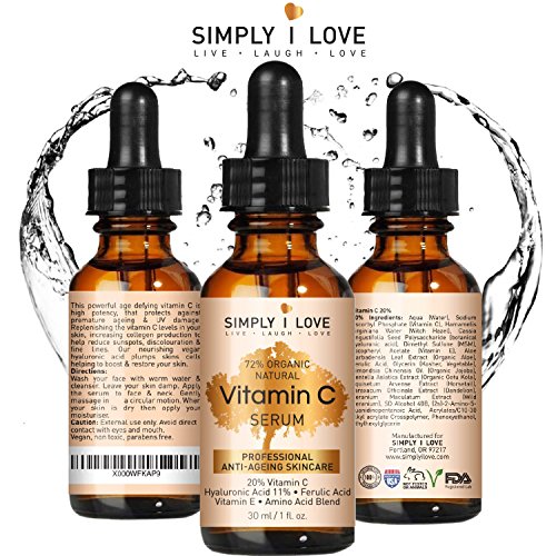 -. Binding : Misc. -. Brand : Simply I Love -. EAN : 0646437516600 -. Feature : REVOLUTIONARY ANTI AGING TREATMENT - Combat signs of aging. Significant decrease in fine lines. Smooth, youthful and beautiful looking skin. Become more confident in your skin. / 20% CLINICALLY ADVANCED VITAMIN C - Our serum goes through extensive clinical testing and is kind to your skin. The vitamin E stabilizes the Vitamin C. Your face will feel radiant & discoloration will be reduced. / HYALURONIC ACID & FERULIC ACID - Super antioxidant Ferulic Acid protects your skin against free radicals & UVB rays. Decreasing redness. Our vegan Hyaluronic Acid boost collegen production, improving the firmness of your skin. / ORGANICALLY & NATURALLY INFUSED - Our serum does not contain alcohol, parabens or sulfates and is safe for all skin types. We are passionate about our products being cruelty free. / 100% CUSTOMER SATISFACTION - It comes with a dropper so easy to use. Soaks in super fast. You will love how your skins feels brighter & smoother. Improving the appearance of scars & fine lines. -. IsAdultProduct : 0 -. Label : Willo Naturals -. Manufacturer : Willo Naturals -. ProductGroup : Beauty -. ProductTypeName : BEAUTY -. Publisher : Willo Naturals -. Studio : Willo Naturals -. Title : Simply I Love Professional Vitamin C Serum - 20% Vitamin C & Vitamin E & 11% HYALURONIC Acid & FERULIC Acid. BEST Anti Aging - Anti Wrinkle. Diminishes Scars & Dark Spots. ORGANIC - CRUELTY FREE - 1oz -. UPC : 646437516600