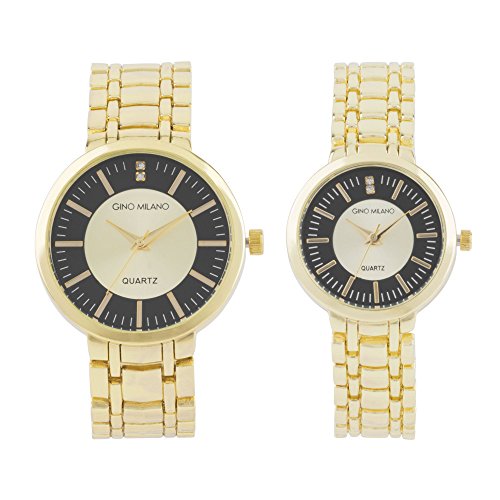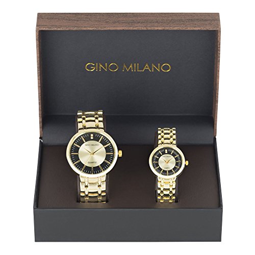 His and Her Watch Sets - 2 Piece Matching Gift Set by Gino Milano with Gift Box-GoldBlack