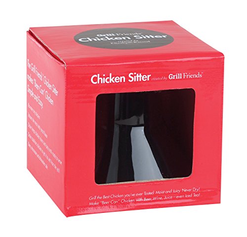 The Grill Friends Chicken Sitter is made from heat-safe porcelain and glazed black so all you notice is the star of the cook-out: a roasting whole chicken “sitting” on the cooking grate. The beauty of the Chicken Sitter is that the beer or other liquid gently steams the bird as the convected heat of the grill roasts the outside to a perfect golden brown. The steamed beer also imparts a depth of flavor that makes the chicken taste better than any you’ve ever had. Oven, microwave and dishwasher safe. Instructions and recipes included.Feature