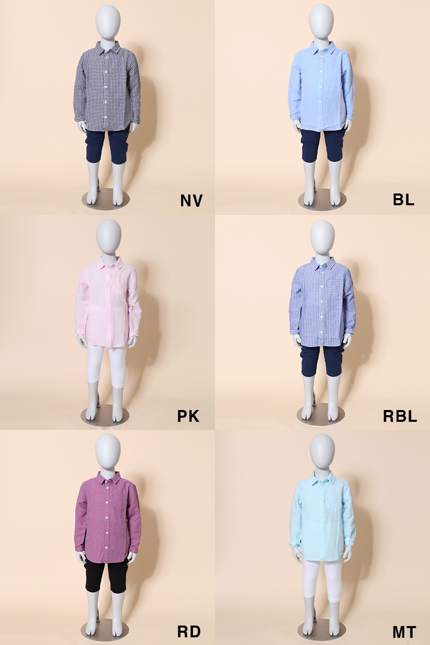 키즈_공용 린넨소재의 베이직 셔츠입니다. 체크 패턴과 솔리드 베이직한 아이템으로 다양한 코디연출이 가능합니다.