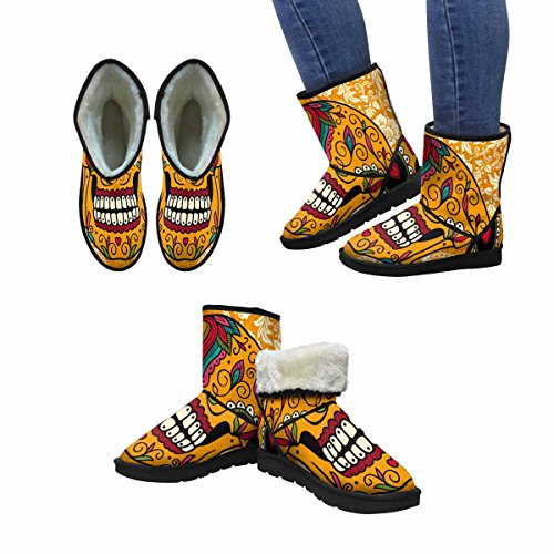 (InterestPrint)/Women's/Boots/DIRECT FROM USA/InterestPrint Women's Snow Boots Mexican Sugar Skull On Lace Design Art Print Deco Unique Desig...