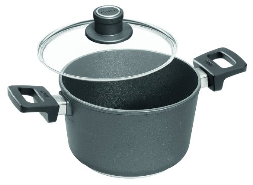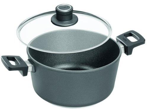 Woll’s advanced titanium reinforced nonstick cooking surface has superior durability and excellent cooking performance. It is guaranteed not to crack, blister, bubble or separate. Titanium is one of the hardest metals and is used in many high tech products such as fighter planes, surgical instruments, hip replacements and golf clubs. The Titanium reinforced nonstick cookware is produced in our state of the art facility in Germany. For healthier cooking, no oils or fats are required. The extra thick body and base is made of stress relieved chill cast aluminum. This process allows for fast and even heat distribution, and better browning, searing and deglazing. These pans are milled perfectly flat for use on all types of ranges; gas, ceramic, electric, radiant and halogen. These pans are guaranteed not to warp. Patented German designed and engineered detachable handle insures easy click-on and click-off, for stove to oven cooking or storage. Each pan has a cast-in threaded brass insert to guarantee that the handle screws never strip or loosen. Ideal for anywhere storage or cooking space is at a premium. With the handles removed it fits easily into the sink or dishwasher. Vented safety glass covers with Stainless Steel rims are available for separate purchase. Titanuim Nowo cookware is oven safe (remove detachable handle, side handles and cover knobs are safe to 500F/260C). Nowo pans are metal utensil and, dishwasher safe plus are PFOA free. Made in Germany with a limited life time warranty.Feature