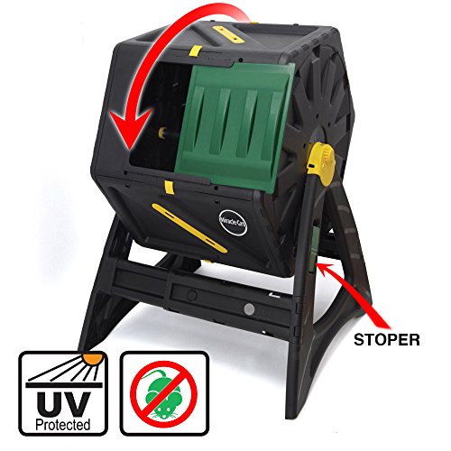 - HEAVY-DUTY DURABILITY – If you’re looking for a compost bin tumbler that can withstand any weather, this is it. Crafted to be long lasting and effortless to use, so you can easily compost for years. The sturdy side-locking mechanism ensures easy loading and unloading, while the durable construction maintains a tight seal to keep out unwanted pests. And BPA-free, food grade, UV-protected plastic, means it’ll never leach harmful toxins.