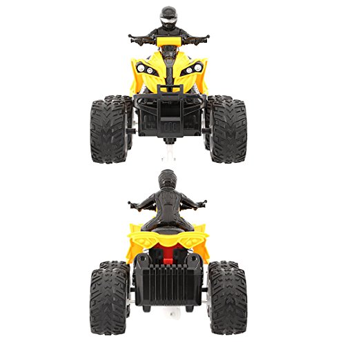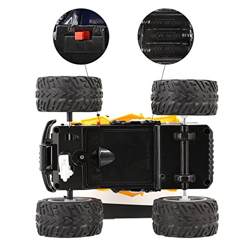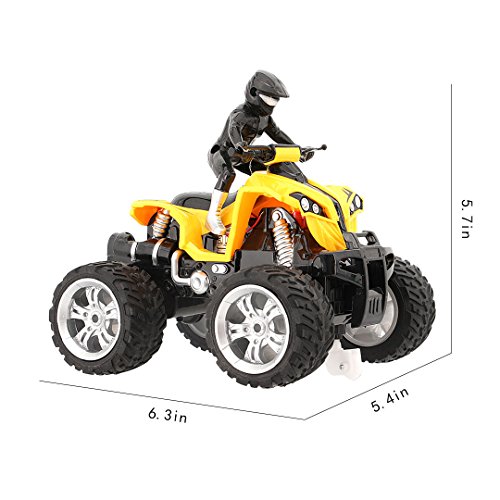 Size:6.3 * 5.4 * 5.7 in(L*W*H),cool appearance,the body uses ABS plastic material, very realistic wheels Function:shockproof,360 degree flip,can drift,pretty cool and you will definately love it ! Attractive characteristic:there is a dummy in the car,attractive and durable 3 AA for the vehicle (Not included) and 2 AA (Not included) for the controller Best gift:it will be the best gift to your kids in birthday day,children's day,christmas,new year.Any question about the product please contact us without hesitation,thank you !